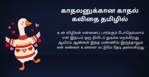 Love Kavithai In Tamil | காதல் கவிதை தமிழில்:காதல் கவிதை என்பது மனசின் ஆழத்தில் இருக்கும் emotions-ஐ அழகான words-ஆ மாற்றும் ஒரு magical expression. காதல் முதல் பார்வையில் வரும் spark-லிருந்து, காலத்தோடு strong ஆகும் understanding வரை ஒரு beautiful journey. ஒரு smile, ஒரு silence, ஒரு small caring act கூட காதலை special ஆக்கிடும். Love kavithai-கள் சந்தோஷம், longing, பிரிவு, நம்பிக்கை போன்ற real feelings-ஐ reflect பண்ணும்.