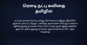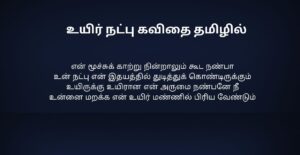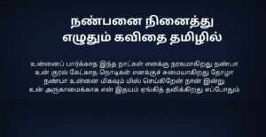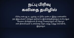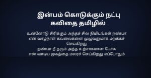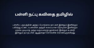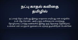 Natpu Kavithai In Tamil | நட்பு கவிதை தமிழில்: நட்பு என்பது வாழ்க்கையில் தானாக கிடைக்கும் ஒரு priceless gift. எந்த உறவிலும் இல்லாத freedom, புரிதல், honesty—all these நட்பில் naturally இருக்கும். சிரிப்பிலும் கண்ணீரிலும், வெற்றியிலும் தோல்வியிலும் stand by பண்ணுவது தான் true friendship. Natpu kavithai-கள் அந்த bond, memories, teasing, silent support ஆகியவற்றை words-ஆக capture பண்ணும். ஒரு friend நம்மை judge பண்ணாமல் accept பண்ணுவான்; நம்ம weakness-ஐ strength-ஆ மாற்ற help பண்ணுவான். Years போனாலும் memories fade ஆகாது—that’s the magic of friendship. Simple lines இருந்தாலும், அதில் இருக்கும் emotion deep. Natpu Kavithai என்பது படிக்க மட்டும் இல்ல; நண்பர்களை நினைத்து smile பண்ண, gratitude feel பண்ண, நட்பின் value-ஐ உணர வைக்கும் ஒரு heartfelt experience.